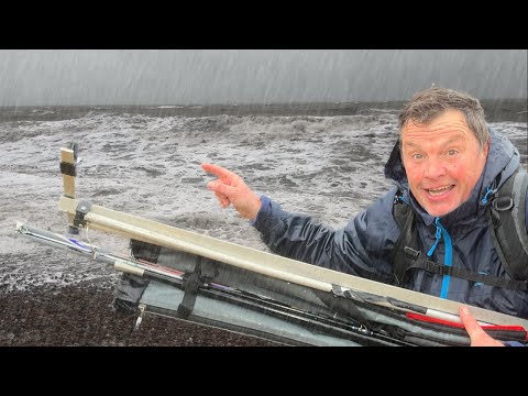 Forholdene er strenge, og lystfiskeren bliver gennemblødt, men der kommer fisk på land, på trods af store bølger, brunt vand og kraftig vind. Dagens fangst er to mindre
